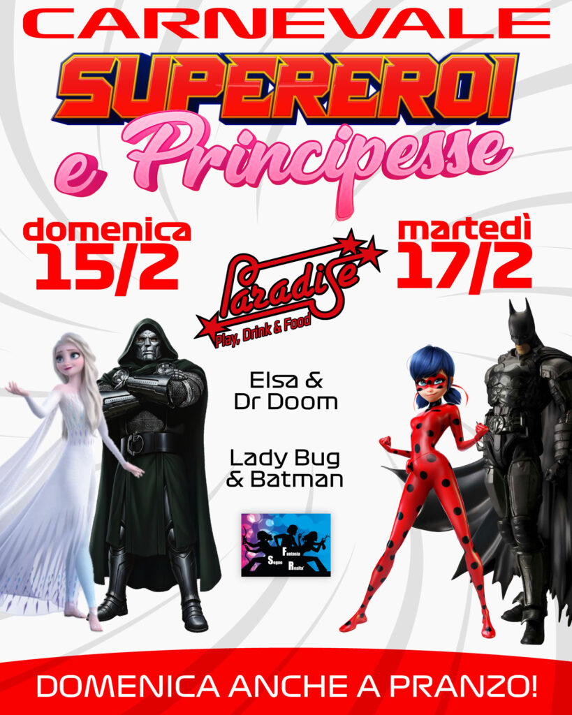 In tutto il locale saranno presenti anche Supereroi e Principesse!