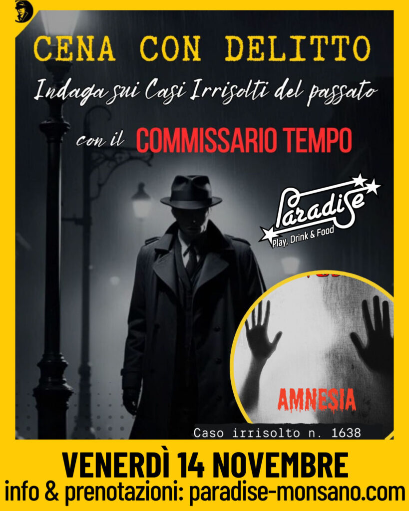 Venerdì 14 novembre 2025 torna l’appuntamento “CENA CON DELITTO”!