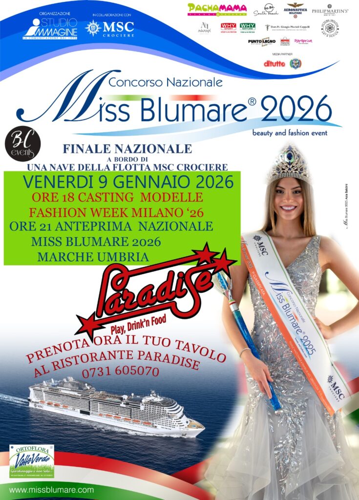ore 21:00 Anteprima Nazionale Miss Blumare 2026 Marche Umbria